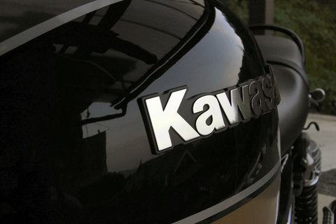 帰宅してから,タンクエンブレムを「Kawasaki」に。大文字の旧タイプ(白)にしようかと思ったけど,結局クロームに。でも,お気に入りです。