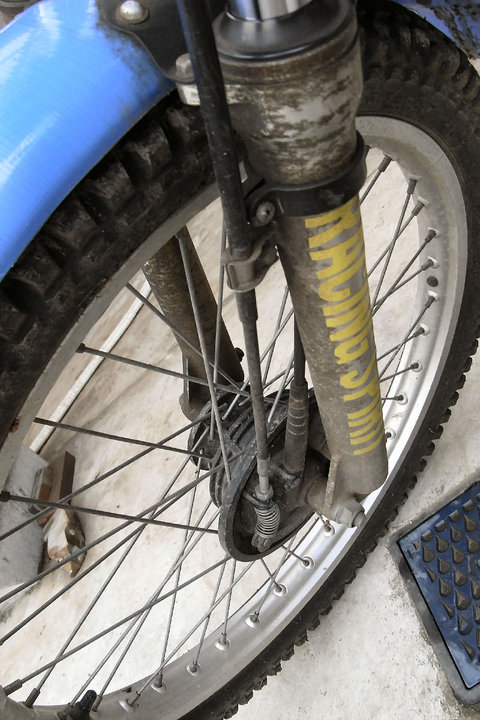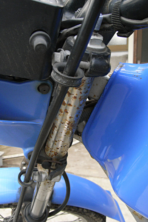 フロントホークはかなり錆びています。オイルはにじみ程度。十分使えます。サビ落としに専念します。