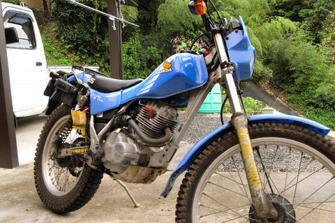 トライアル遊びがしたいなってことと,ちょっとバイクのレストアをやってみたいなということで,ずっと以前からTL125を物色していました。そして,先日見つけました。実動,錆び多し,灯火類ダメって品物を。早速交渉。早期終了,直接取引でTL125をゲットしてきました。車両の様子は,こんな感じです。