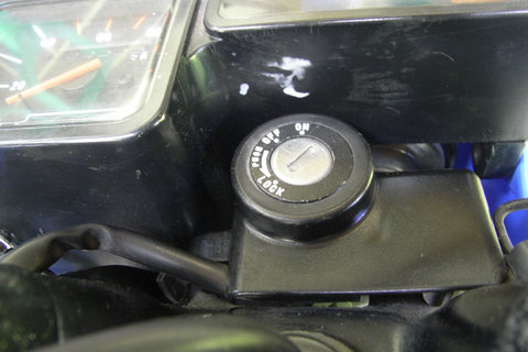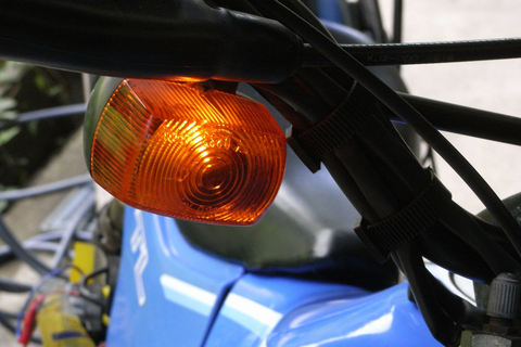 灯火類のチェックです。「不灯」ということだったので,これはプロに依頼かなと思っていたのですが,何と,ウインカーもライトもしっかり点灯するではないですか。ただ,6Vの悲しさで,エンジンの回転数を上げないとウインカーは点減しません。ライトとウインカーの同時点灯は,ウインカーの点減はしません。でも,いいです。バッチリーカバーがないので,バッテリーが丸見えなのですが,新品のバッテリーが入っています。「不灯」の連絡のあと,交換してくださったようです。感謝。でも,私はバッテリーレスにする予定です。