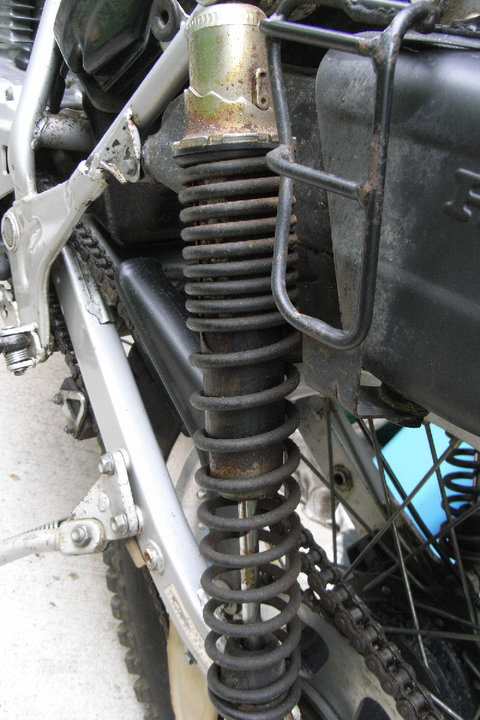 錆がひどかったリアサス。状態の確認も兼ねて分解しました。分解前のサスの状態はこんな感じです。