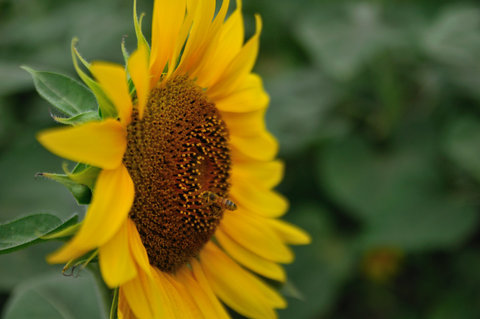 みつばちがせっせと働いています。体を花粉でいっぱいにして。三脚を立てて撮影している方が多かったのです。SIGMAのレンズってあっさり系の色味だなという印象が強かったのですが,D300で使うと,結構こってり系の色味になります。ひまわりには似合ってるかも。もっとも編集でどうにでもなるのですが。