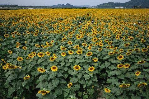 8月末になって満開を迎えた笠岡のひまわり。毎年見に来ています。そして,夏の終わりを感じます。