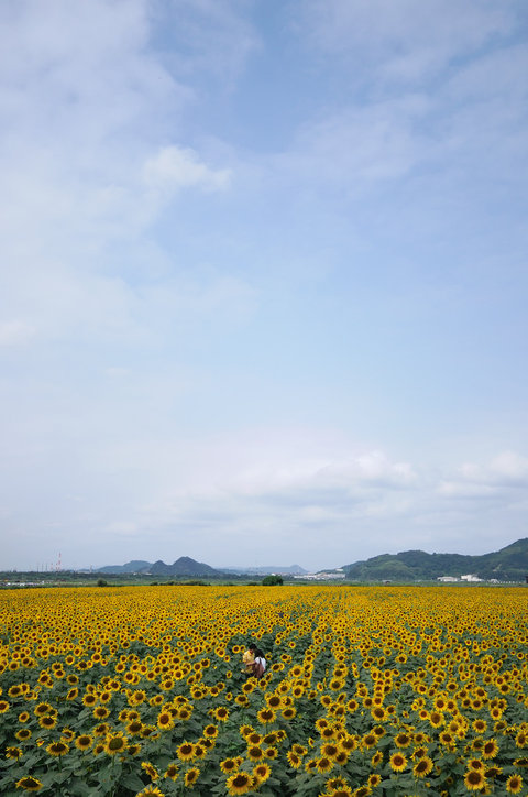 私は,夕刻のひまわりが好きです。でも,今年はお昼前に見に来ました。ゆく夏を惜しむ人がたくさん訪問していました。