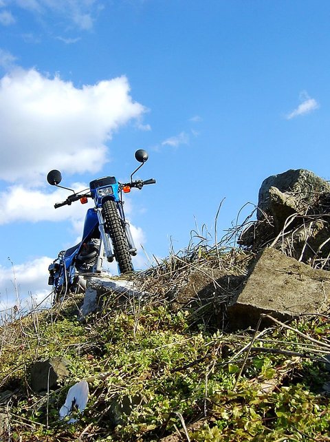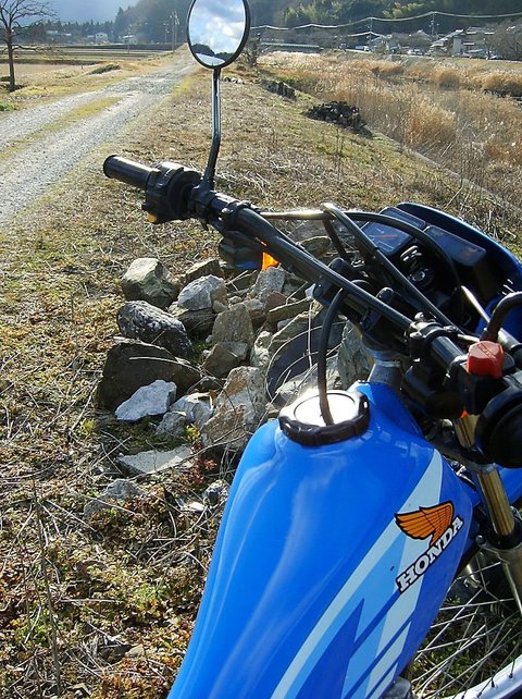 1時間ほど,ウイリーの練習したり,川土手を降りたり上ったり,で遊びました。石を積んでいるところはなかなかスリリングです。無理はできないけど。転ぶの嫌だし。