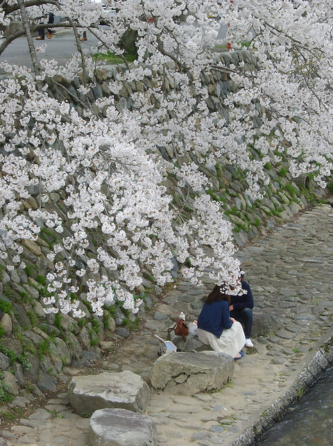 バイクを止めて,川沿いを散策しました。サクラは満開。いいですね。ゆったりとした時間を過ごしました。