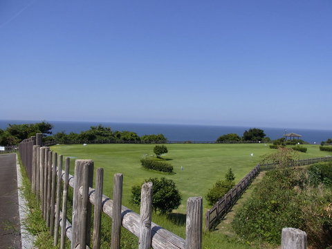途中「グランドゴルフ発祥の地」の看板を発見。グランドゴルフには興味はないけど,見晴らしが良さそうなので,立ち寄りました。絶景。予想外です。