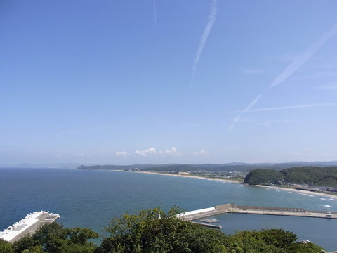 人形峠を越えて,倉吉へ。海岸近くを鳥取に向けてのんびり走りました。空が青,海が青。止まると暑いけど,走っていると風が気持ちよかった。
