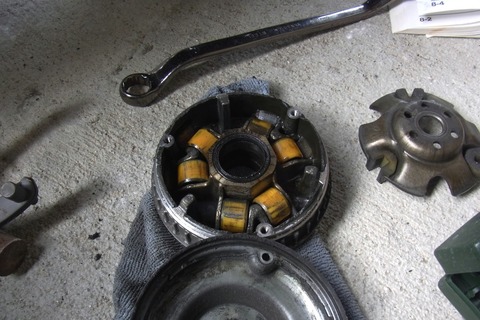 ウエイトローラーは若干遍摩耗しています。グリスは内部で固まっていました。