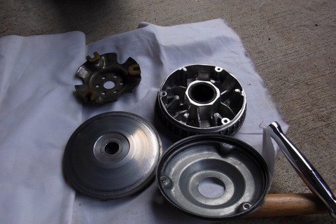 JF03の走行距離が、23000kmを超えました。どうも走行中速度を上げると振動が大きい。後輪あたりからの音が大きい。と感じてました。気にせずに乗ってましたが、思い立ってウエイトローラーとドライブベルトを交換しました。