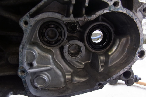 交換にかかったのですが、ベアリングが抜けません。クランクケースをガスバーナーで熱してもびくともしません。結局、切断して取り外しました。